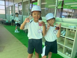保育風景 夏休み 2025年8月22日(金) せみだー!とんぼだー! 仮設園舎に移って初めての夏休み☀️朝顔の花で色水を作ったり、水遊びをたくさん楽しみました。木がなくても、時々セミやとんぼが遊びにやってきましたね🪰 もどる