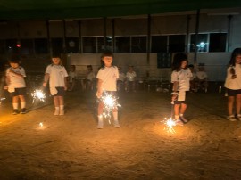キャンプファイヤーでは、火の女神様が持ってきてくれた火を囲ってゲームをしたり花火も楽しみました😊